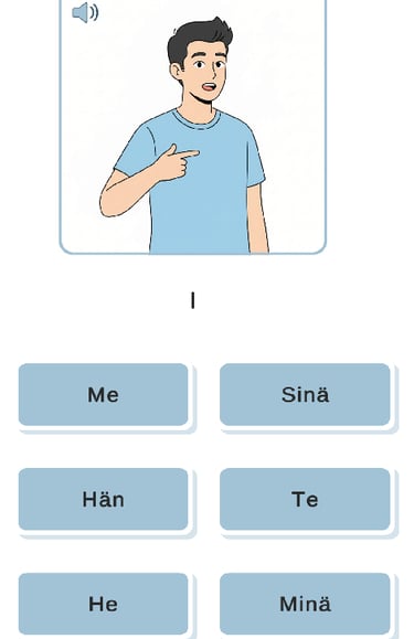 Who are we? Learn essential pronouns like Sinä (You), Me (We), and He (They) — the foundation of every conversation.